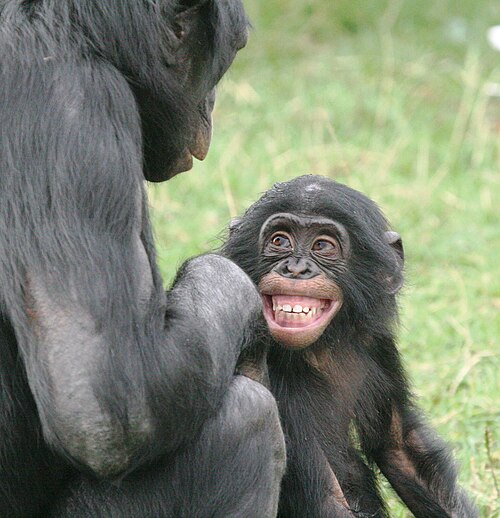 Working with chimps, De Waal and others have observed behavioral synchronization, which indicates what psychologists call “bodily empathy”—like us, chimps tend to yawn when they see another doing so; like ours, their laughter is contagious. Through mood contagion we, our primate ancestors, and many other animals are able to coordinate group behavior—a fact that is not lost on modern dictators and politicians. But do chimps and bonobos exhibit real empathy—empathy that does not indicate a potential reward?