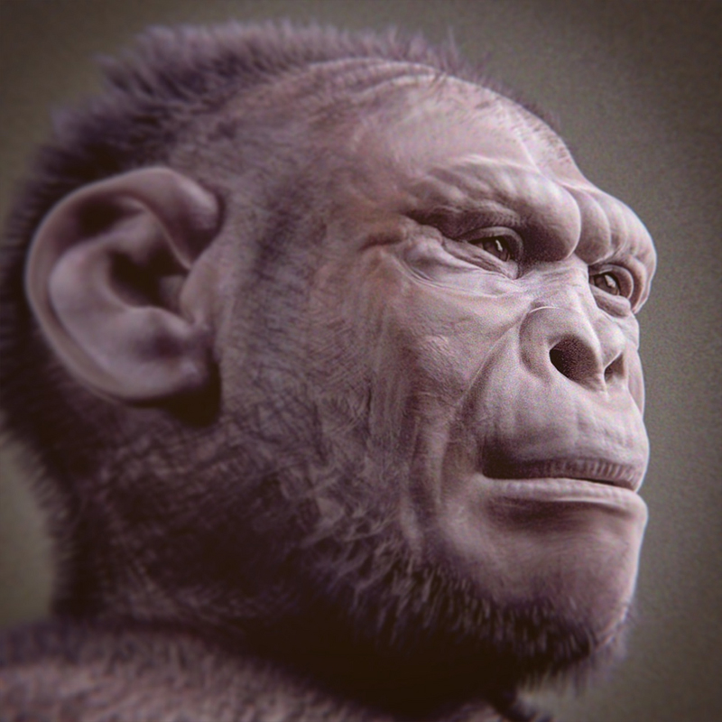 Fire had been discovered by 600,000 years ago, and by then our brain size had doubled. The discovery of fire affected our physical evolution—softer food allowed smaller teeth, making room for even larger brains and enabling speech. The tools and our bodies were interacting, with advances in technology being reflected in our physical being.