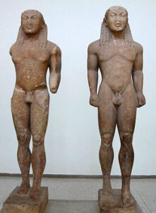 Kleobis and Biton, kouroi of the Archaic period, ca 580 BCE Held at the Delphi Archaeological Museum.