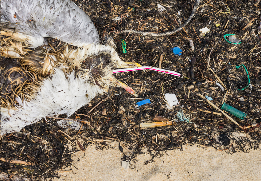 The Great Pacific Garbage Patch that revolves between California and Hawaii is at least twice the size of Texas and growing. The garbage is mostly plastic, perhaps as many as 2,000,000,000,000 floating pieces. And this is only one of five such vortexes – there is another in the Pacific, two in the Atlantic, and one in the Indian Ocean. But even if we could remove every piece of visible plastic in and under the water in all these enormous patches, it would not fix the problem. Most of this plastic has been broken into tiny pieces called “microplastic.” Every type of sea life has this microplastic in its body, and so do the birds and land creatures that eat them.